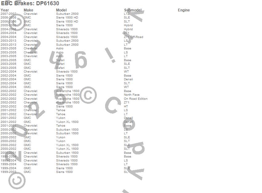 Below is an abreviated list of applications for the EBC 6000 Series Greenstuff Truck/SUV Brakes Disc Pads.