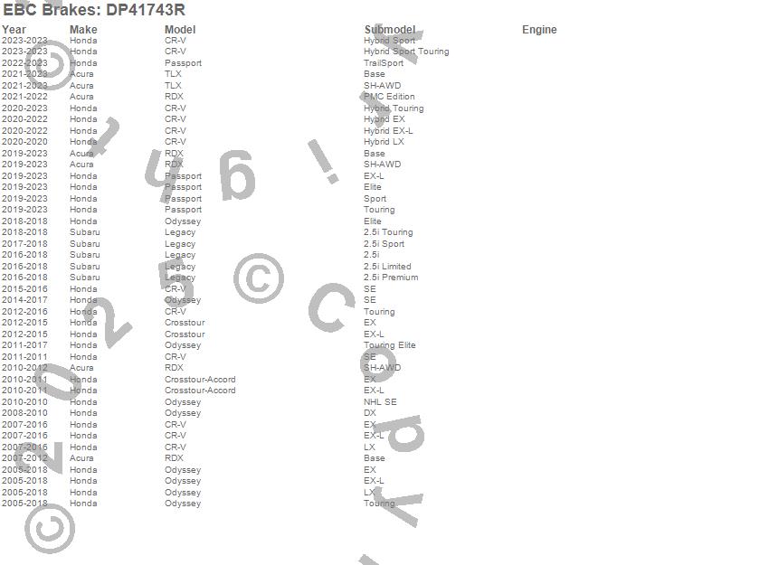 Below is an abreviated list of applications for the Yellowstuff Street And Track Brake Pads. Accord Crosstour, CR-V, Crosstour, Odyssey, RDX, Acura, Honda, 2016, 2015, 2014, 2013, 2012, 2011, 2010, 2009, 2008, 2007, 2006, 2005 more…
