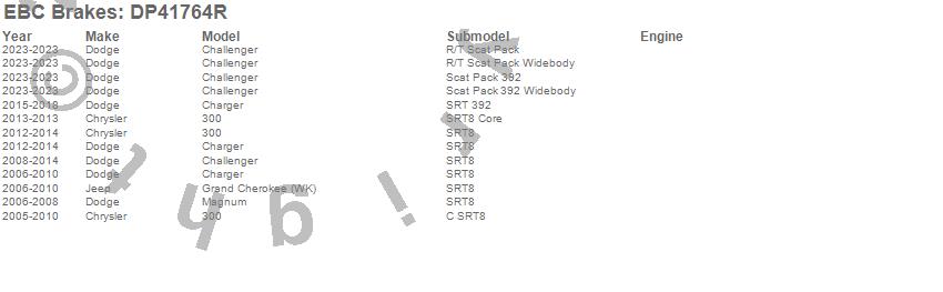 Below is an abreviated list of applications for the Yellowstuff Street And Track Brake Pads. 300, Challenger, Charger, Grand Cherokee (WK), Magnum, Chrysler, Dodge, Jeep, 2015, 2014, 2013, 2012, 2011, 2010, 2009, 2008, 2007, 2006, 2005 more…