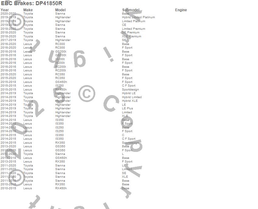 Below is an abreviated list of applications for the Yellowstuff Street And Track Brake Pads. GS350, GS450h, Highlander, IS250, RC350, RX350, RX450h, Sienna, Lexus, Toyota, 2016, 2015, 2014, 2013, 2012, 2011, 2010 more…