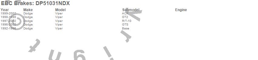 Below is an abreviated list of applications for the EBC Bluestuff NDX Full Race Brake Pads.