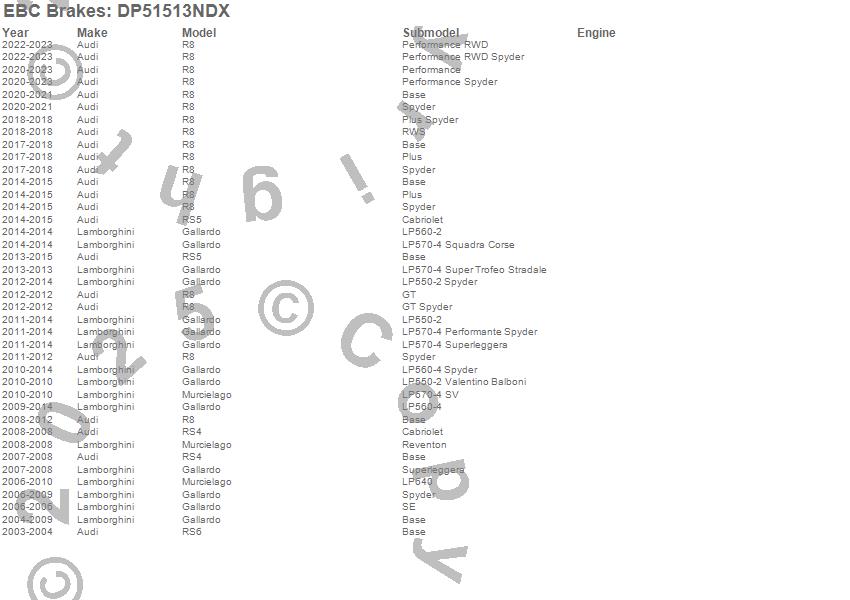 Below is an abreviated list of applications for the EBC Bluestuff NDX Full Race Brake Pads.