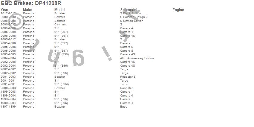 Below is an abreviated list of applications for the Yellowstuff Street And Track Brake Pads. 911, Boxster, Cayman, Porsche, 2012, 2011, 2010, 2009, 2008, 2007, 2006, 2005, 2004, 2003, 2002, 2001, 2000, 1999, 1998, 1997 more…