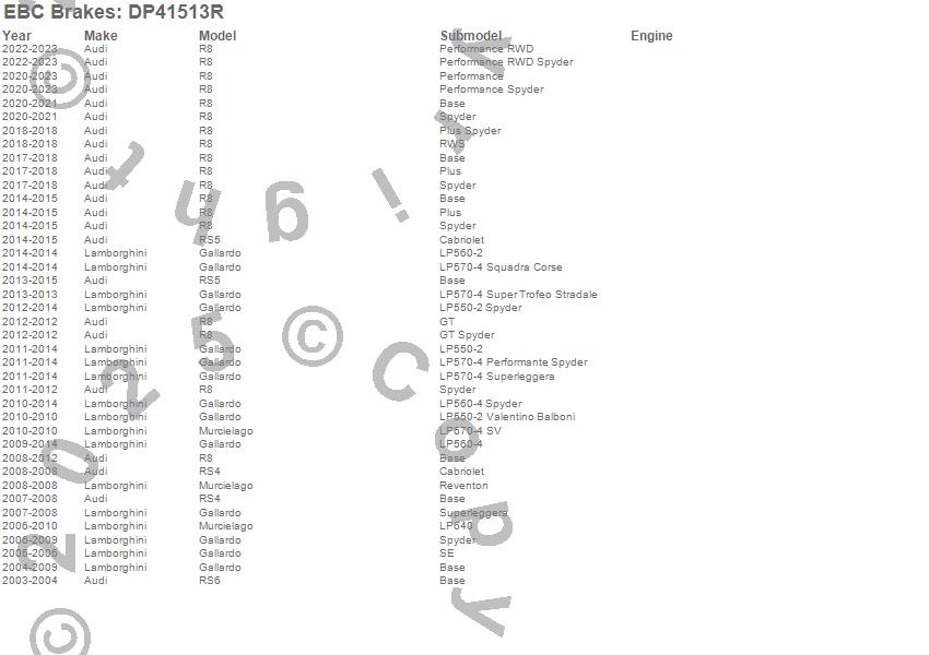 Below is an abreviated list of applications for the Yellowstuff Street And Track Brake Pads. Gallardo, Murcielago, R8, RS4, RS5, RS6, Audi, Lamborghini, 2014, 2013, 2012, 2011, 2010, 2009, 2008, 2007, 2006, 2005, 2004, 2003 more…