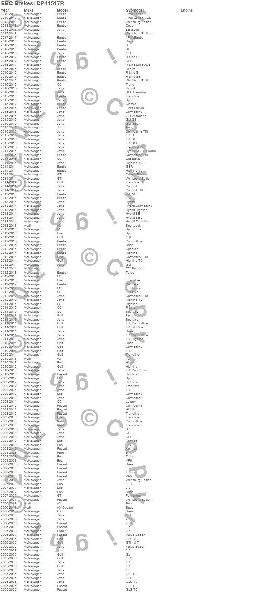 Below is an abreviated list of applications for the Yellowstuff Street And Track Brake Pads. A3, A3 Quattro, Beetle, CC, Eos, Golf, GTI, Jetta, Passat, Rabbit, Audi, Volkswagen, 2016, 2015, 2014, 2013, 2012, 2011, 2010, 2009 more…