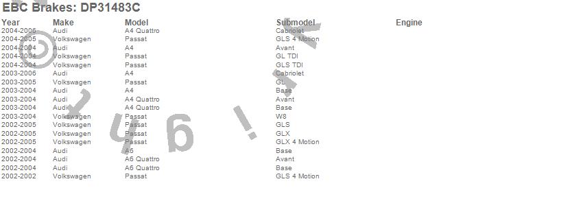 Below is an abreviated list of applications for the EBC Redstuff Ceramic Low Dust Brake Pads.