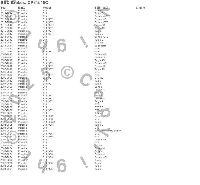Below is an abreviated list of applications for the EBC Redstuff Ceramic Low Dust Brake Pads.