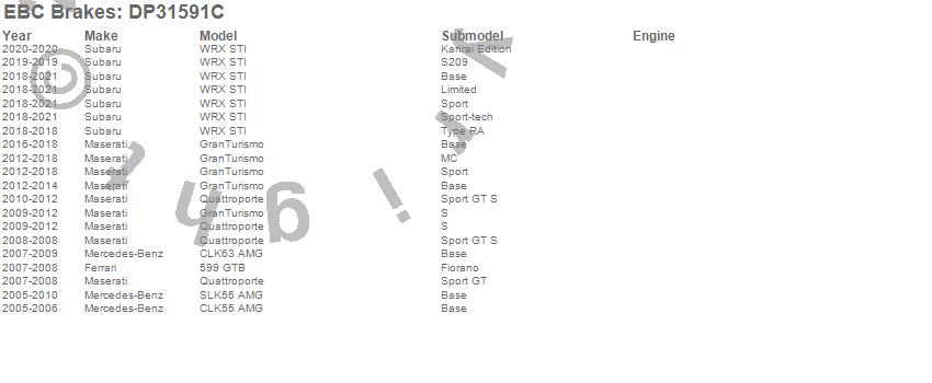 Below is an abreviated list of applications for the EBC Redstuff Ceramic Low Dust Brake Pads.