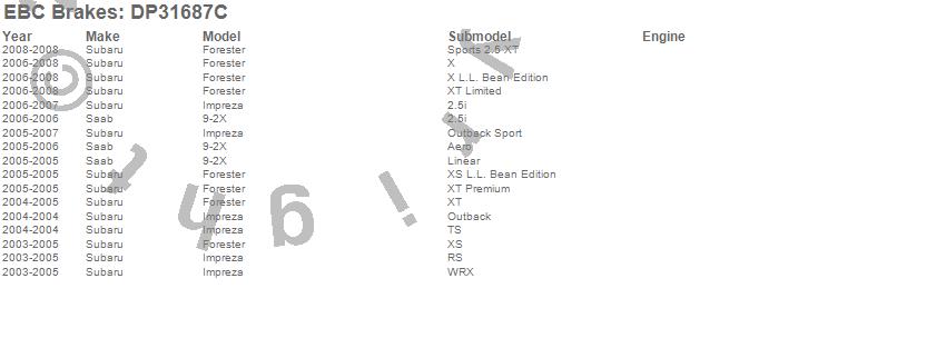 Below is an abreviated list of applications for the EBC Redstuff Ceramic Low Dust Brake Pads.