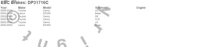 Below is an abreviated list of applications for the EBC Redstuff Ceramic Low Dust Brake Pads.
