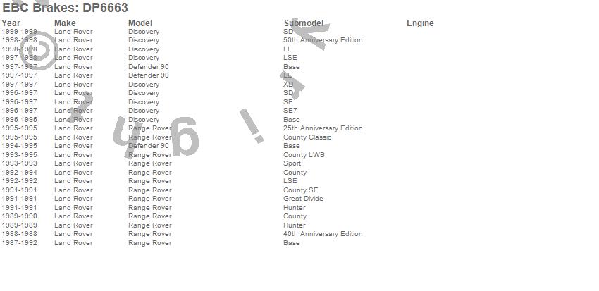 Below is an abreviated list of applications for the EBC 6000 Series Greenstuff Truck/SUV Brakes Disc Pads.