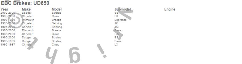Below is an abreviated list of applications for the EBC Ultimax OEM Replacement Brake Pads.