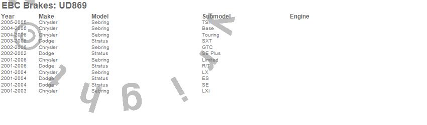 Below is an abreviated list of applications for the EBC Ultimax OEM Replacement Brake Pads.