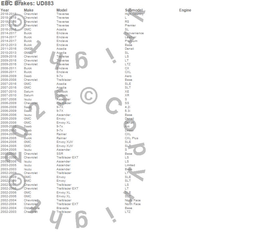 Below is an abreviated list of applications for the EBC Ultimax OEM Replacement Brake Pads.