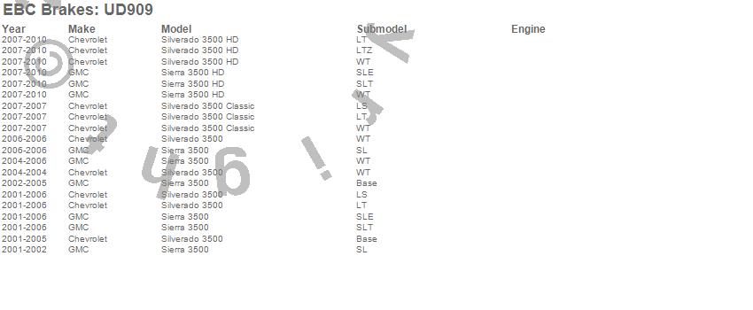 Below is an abreviated list of applications for the EBC Ultimax OEM Replacement Brake Pads.