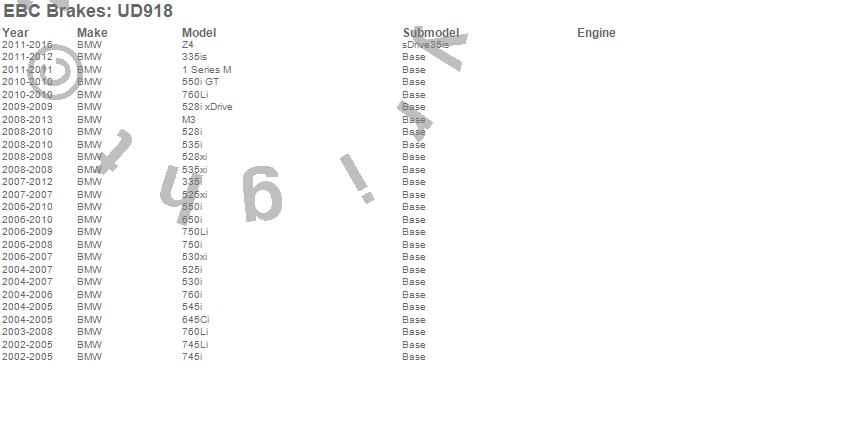 Below is an abreviated list of applications for the EBC Ultimax OEM Replacement Brake Pads. 1 Series M, 335i, 335is, 525i, 525xi, 528i, 528i xDrive, 528xi, 530i, 530xi, 535i, 535xi, 545i, 550i, 550i GT, 645Ci, 650i, 745i, 745Li, 750i more…