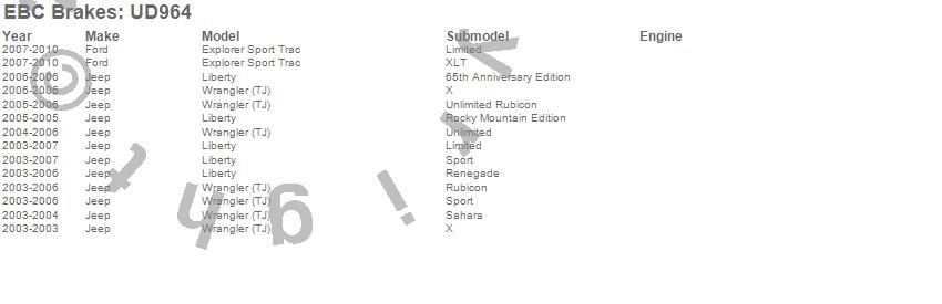 Below is an abreviated list of applications for the EBC Ultimax OEM Replacement Brake Pads.