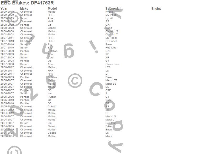 Below is an abreviated list of applications for the Yellowstuff Street And Track Brake Pads. Aura, Classic, Cobalt, G5, G6, HHR, Ion, Malibu, Pursuit, Sky, Solstice, Chevrolet, Pontiac, Saturn, 2012, 2011, 2010, 2009, 2008, 2007 more…