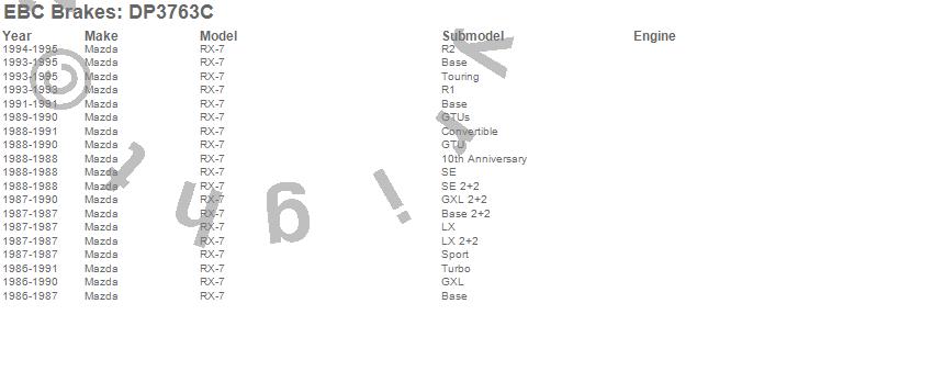 Below is an abreviated list of applications for the EBC Redstuff Ceramic Low Dust Brake Pads.