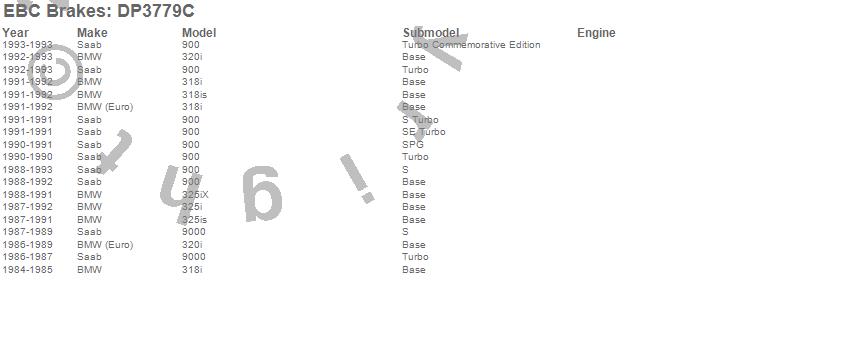 Below is an abreviated list of applications for the EBC Redstuff Ceramic Low Dust Brake Pads. 318i, 318is, 320i, 325i, 325is, 325iX, 900, 9000, BMW, BMW (Euro), Saab, 1993, 1992, 1991, 1990, 1989, 1988, 1987, 1986, 1985 more…