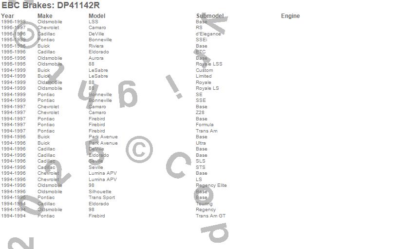 Below is an abreviated list of applications for the Yellowstuff Street And Track Brake Pads.