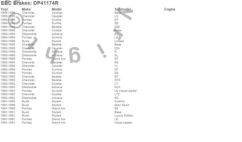Below is an abreviated list of applications for the Yellowstuff Street And Track Brake Pads. Achieva, Beretta, Cavalier, Corsica, Grand Am, Skylark, Sunbird, Sunfire, Buick, Chevrolet, Oldsmobile, Pontiac, 1995, 1994, 1993, 1992, 1991 more…