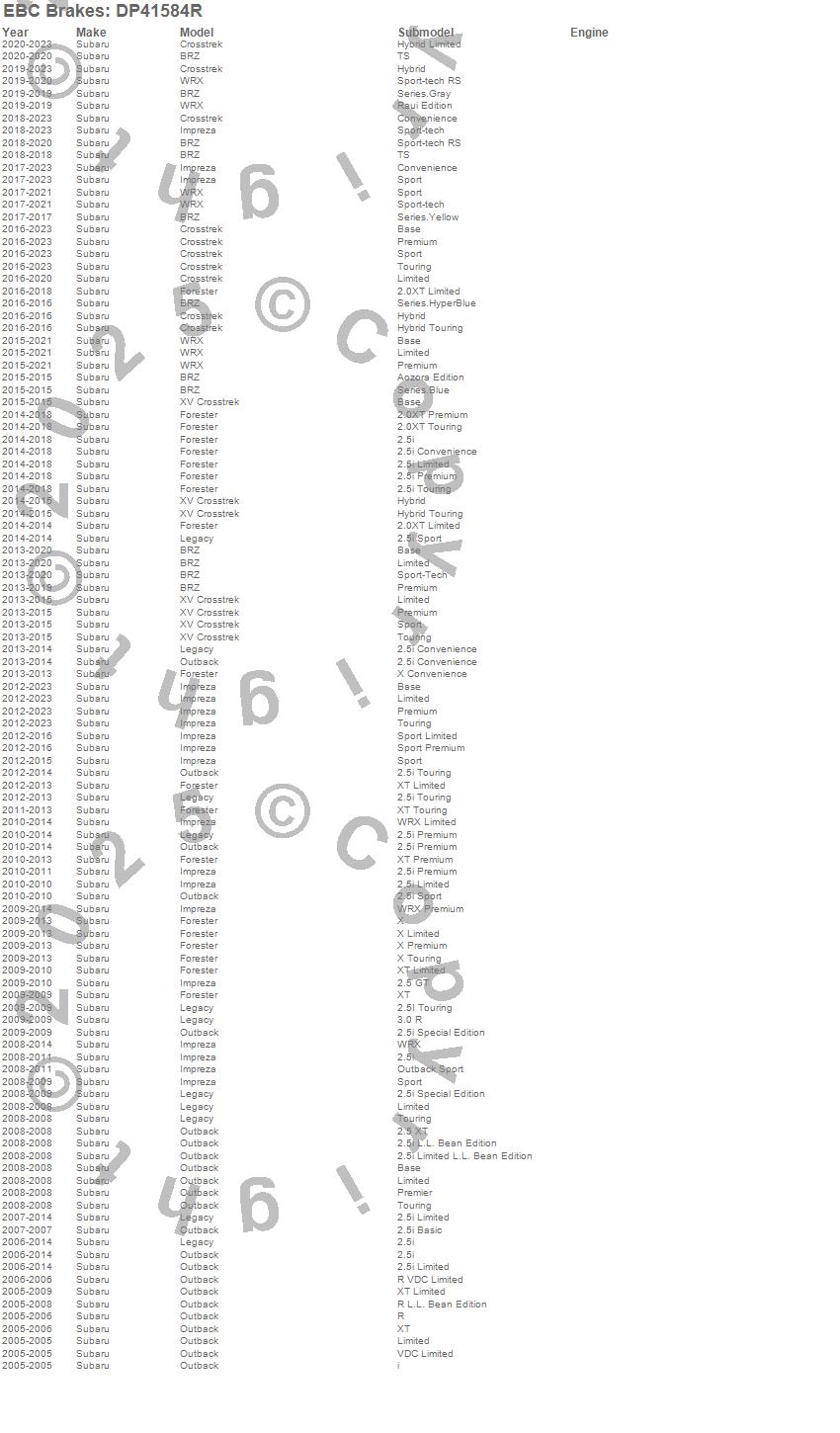Below is an abreviated list of applications for the Yellowstuff Street And Track Brake Pads. BRZ, Forester, Impreza, Legacy, Outback, XV Crosstrek, Subaru, 2015, 2014, 2013, 2012, 2011, 2010, 2009, 2008, 2007, 2006, 2005 more…