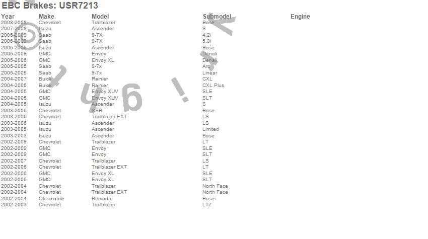 Below is an abreviated list of applications for the EBC USR Series Sport Slotted Rotor.
