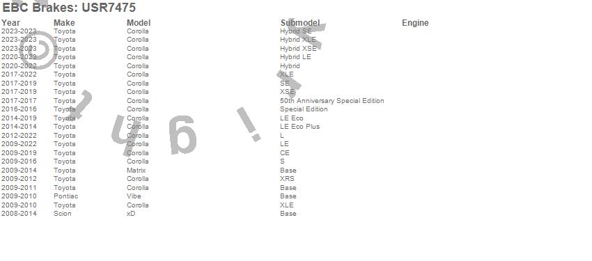 Below is an abreviated list of applications for the EBC USR Series Sport Slotted Rotor.