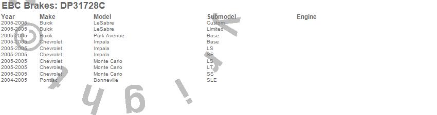 Below is an abreviated list of applications for the EBC Redstuff Ceramic Low Dust Brake Pads.