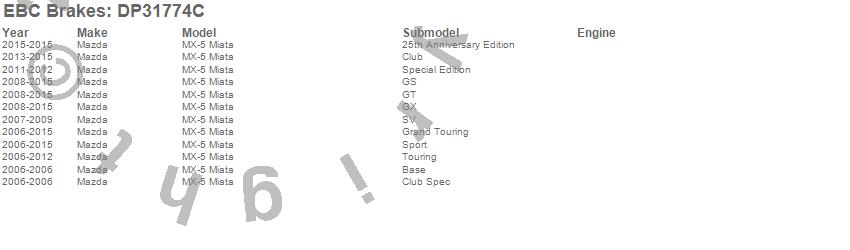 Below is an abreviated list of applications for the EBC Redstuff Ceramic Low Dust Brake Pads.