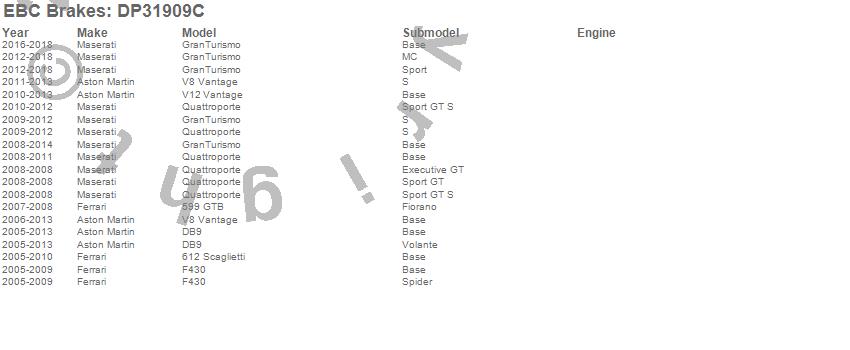 Below is an abreviated list of applications for the EBC Redstuff Ceramic Low Dust Brake Pads.
