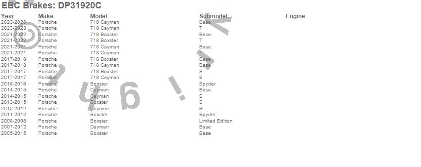 Below is an abreviated list of applications for the EBC Redstuff Ceramic Low Dust Brake Pads.