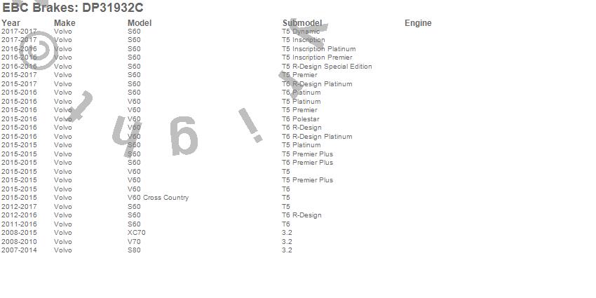 Below is an abreviated list of applications for the EBC Redstuff Ceramic Low Dust Brake Pads.