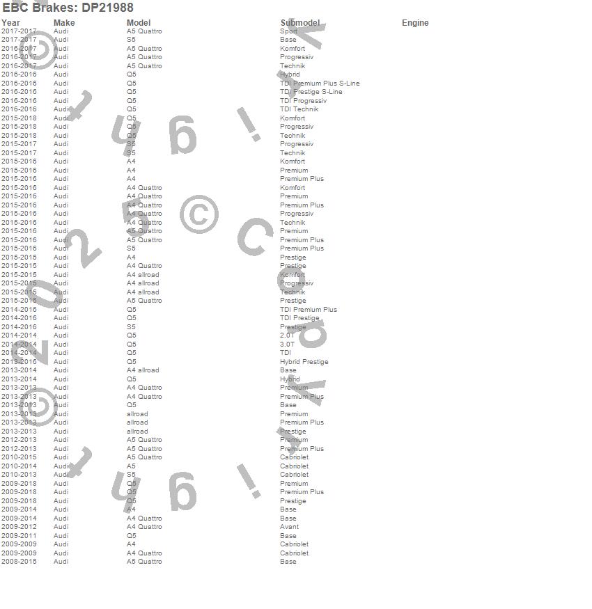 Below is an abreviated list of applications for the EBC Greenstuff 2000 Series Sport Brake Pads.