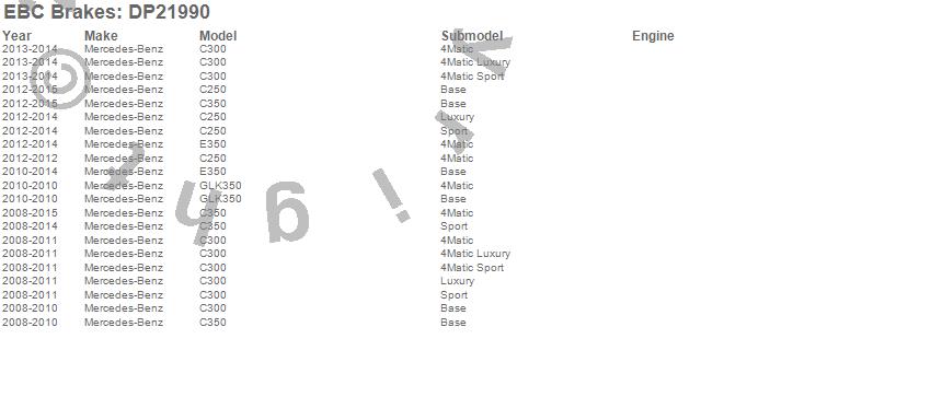 Below is an abreviated list of applications for the EBC Greenstuff 2000 Series Sport Brake Pads.