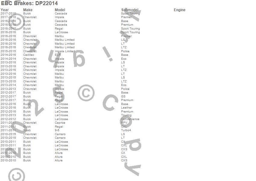Below is an abreviated list of applications for the EBC Greenstuff 2000 Series Sport Brake Pads.