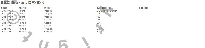 Below is an abreviated list of applications for the EBC Greenstuff 2000 Series Sport Brake Pads.