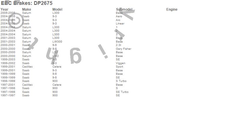 Below is an abreviated list of applications for the EBC Greenstuff 2000 Series Sport Brake Pads.