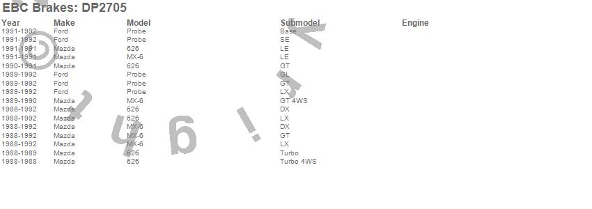 Below is an abreviated list of applications for the EBC Greenstuff 2000 Series Sport Brake Pads.