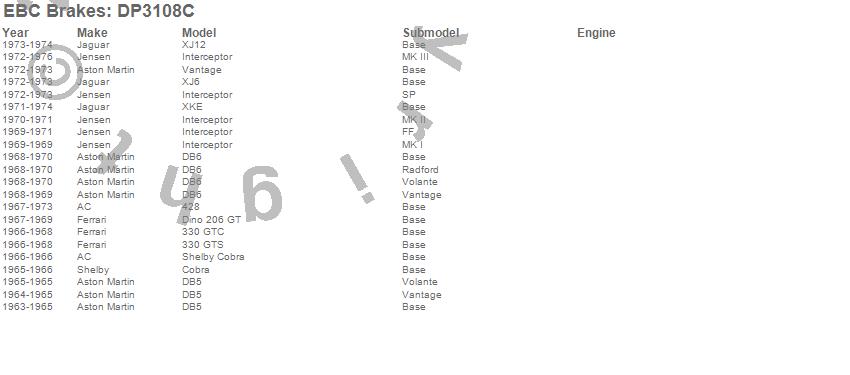 Below is an abreviated list of applications for the EBC Redstuff Ceramic Low Dust Brake Pads.