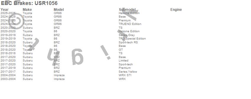 Below is an abreviated list of applications for the EBC USR Series Sport Slotted Rotor.