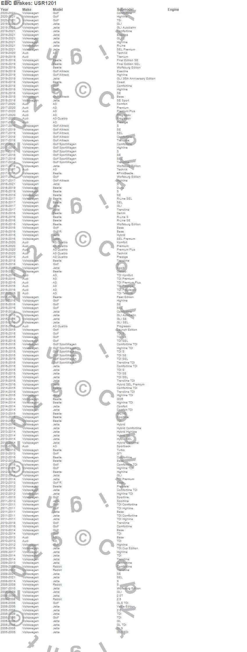 Below is an abreviated list of applications for the EBC USR Series Sport Slotted Rotor.