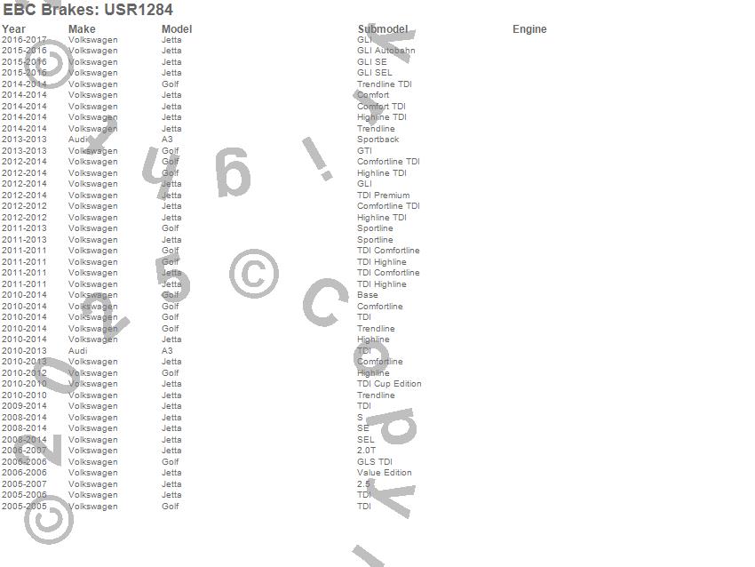 Below is an abreviated list of applications for the EBC USR Series Sport Slotted Rotor.