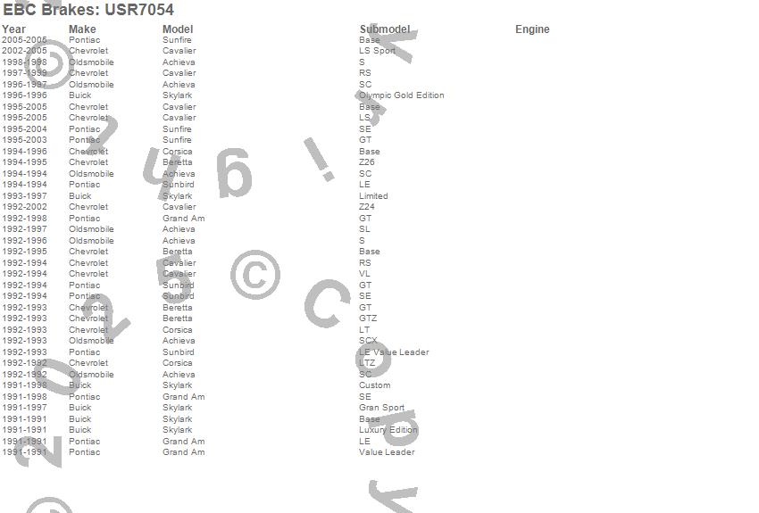Below is an abreviated list of applications for the EBC USR Series Sport Slotted Rotor.