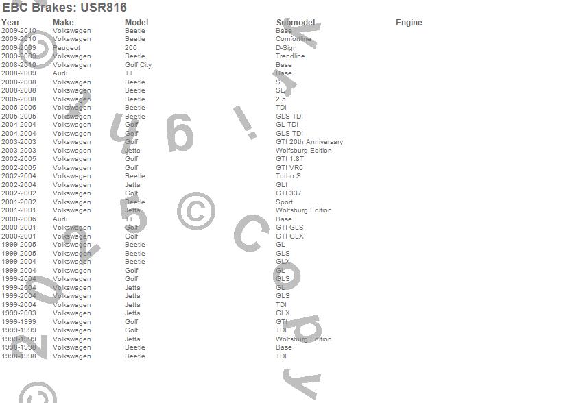 Below is an abreviated list of applications for the EBC USR Series Sport Slotted Rotor.