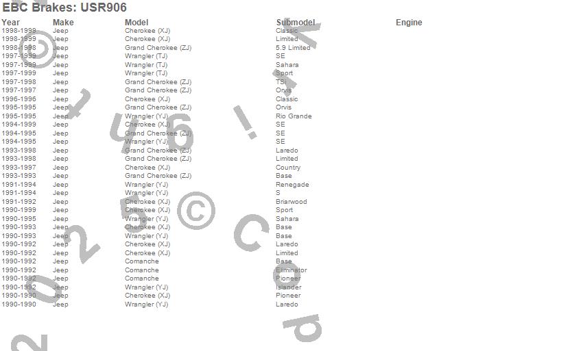 Below is an abreviated list of applications for the EBC USR Series Sport Slotted Rotor.