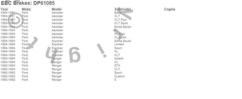 Below is an abreviated list of applications for the EBC 6000 Series Greenstuff Truck/SUV Brakes Disc Pads.