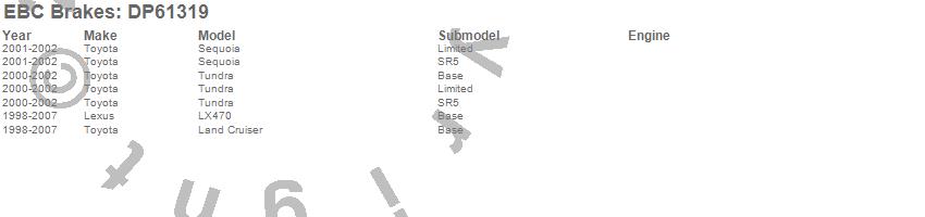 Below is an abreviated list of applications for the EBC 6000 Series Greenstuff Truck/SUV Brakes Disc Pads.