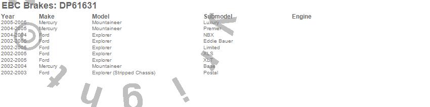 Below is an abreviated list of applications for the EBC 6000 Series Greenstuff Truck/SUV Brakes Disc Pads.